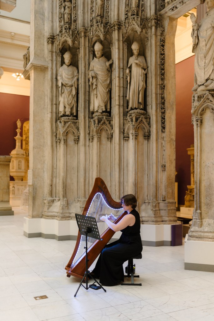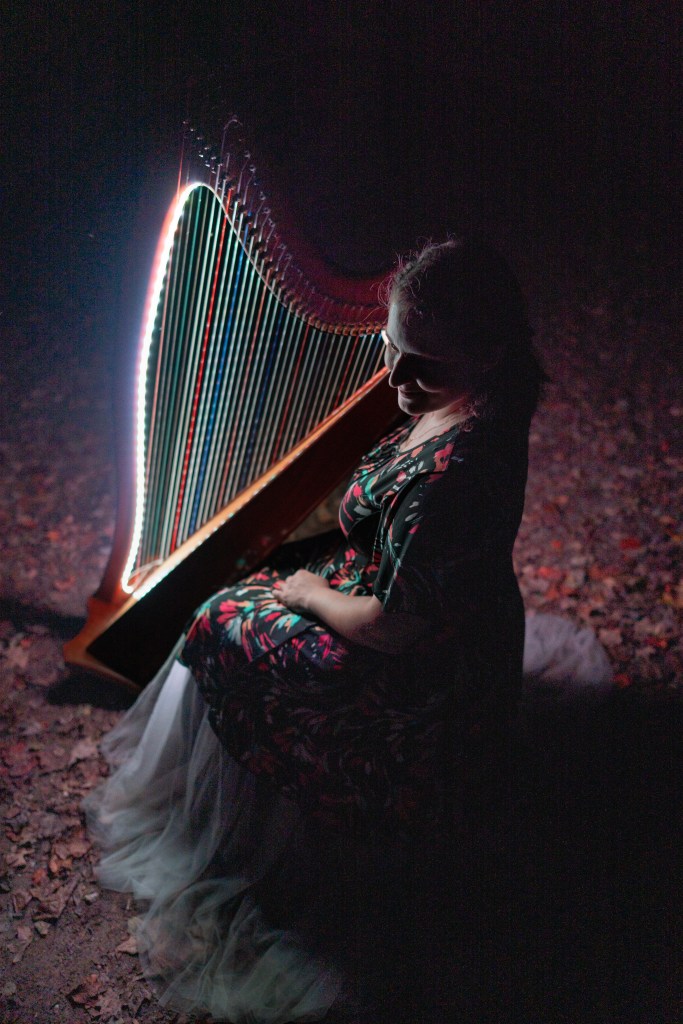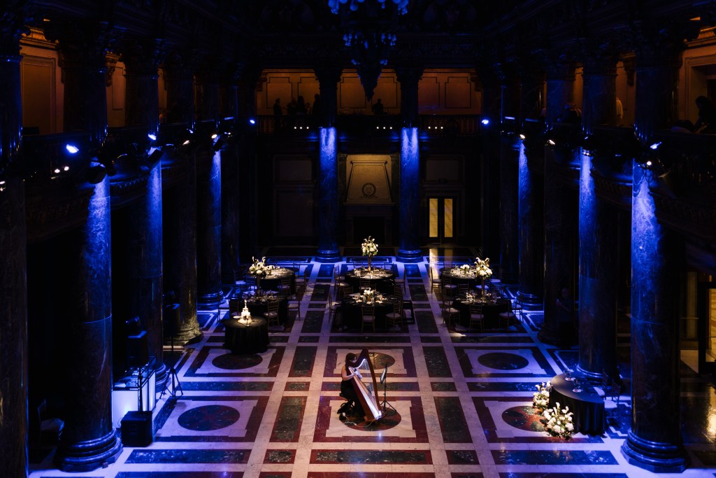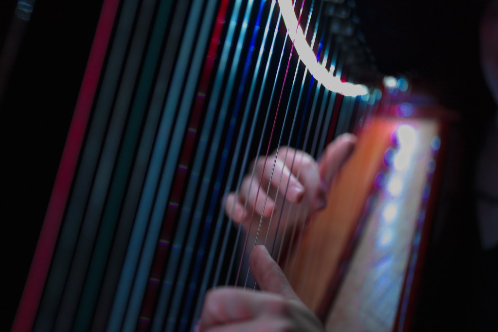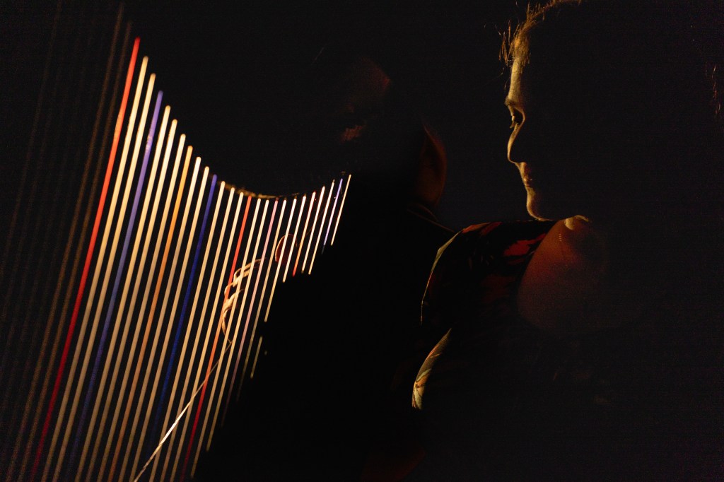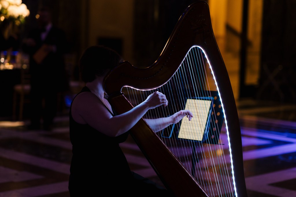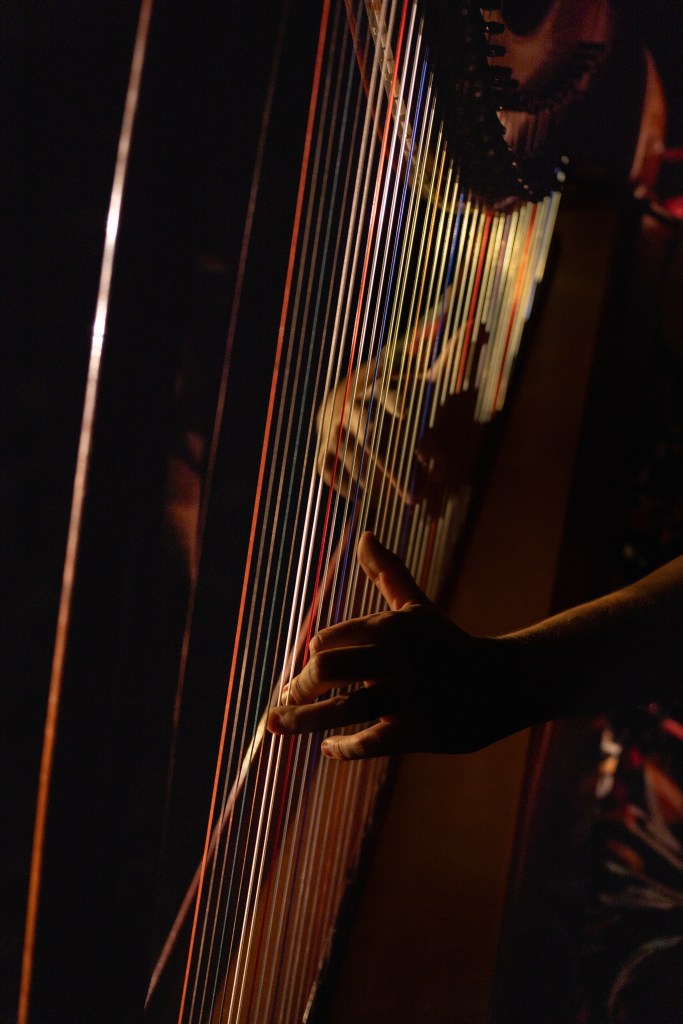 A glimpse into the atmosphere and settings where The Illuminated Harpist performs. Each event is unique, shaped by its space, lighting, and the people gathered.